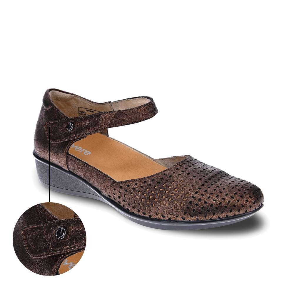 Delicate perforations adorn these stylish mary jane shoes, ensuring a soft, flexible fit. A tapered wedge adds just enough height, bridging the gap between work and weekend-wear. Like its namesake city, Osaka brings together modern styling while paying homage to a traditional silhouette. These orthopedic shoes for women feature a removable insoles which allows for the insertion of custom orthotics.